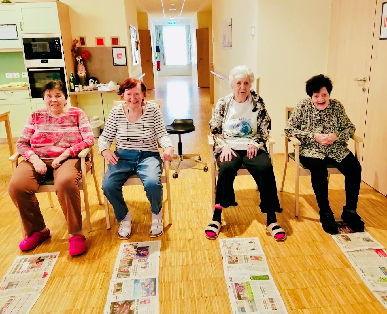 Im SeneCura Sozialzentrum Sitzenberg-Reidling fand unlängst ein besonderes Spiel statt, das für viel Freude und Bewegung sorgte: Ein Wettkampf im Zeitungsfalten, jedoch nicht mit den Händen, sondern mit den Füßen! Jeweils vier Bewohner:innen traten gegeneinander an und versuchten, mit ihren Beinen die vor ihnen liegenden Zeitungen möglichst geschickt zu falten. Diese kreative Aktivität förderte nicht nur die Motorik, sondern brachte auch jede Menge Spaß und Gelächter.