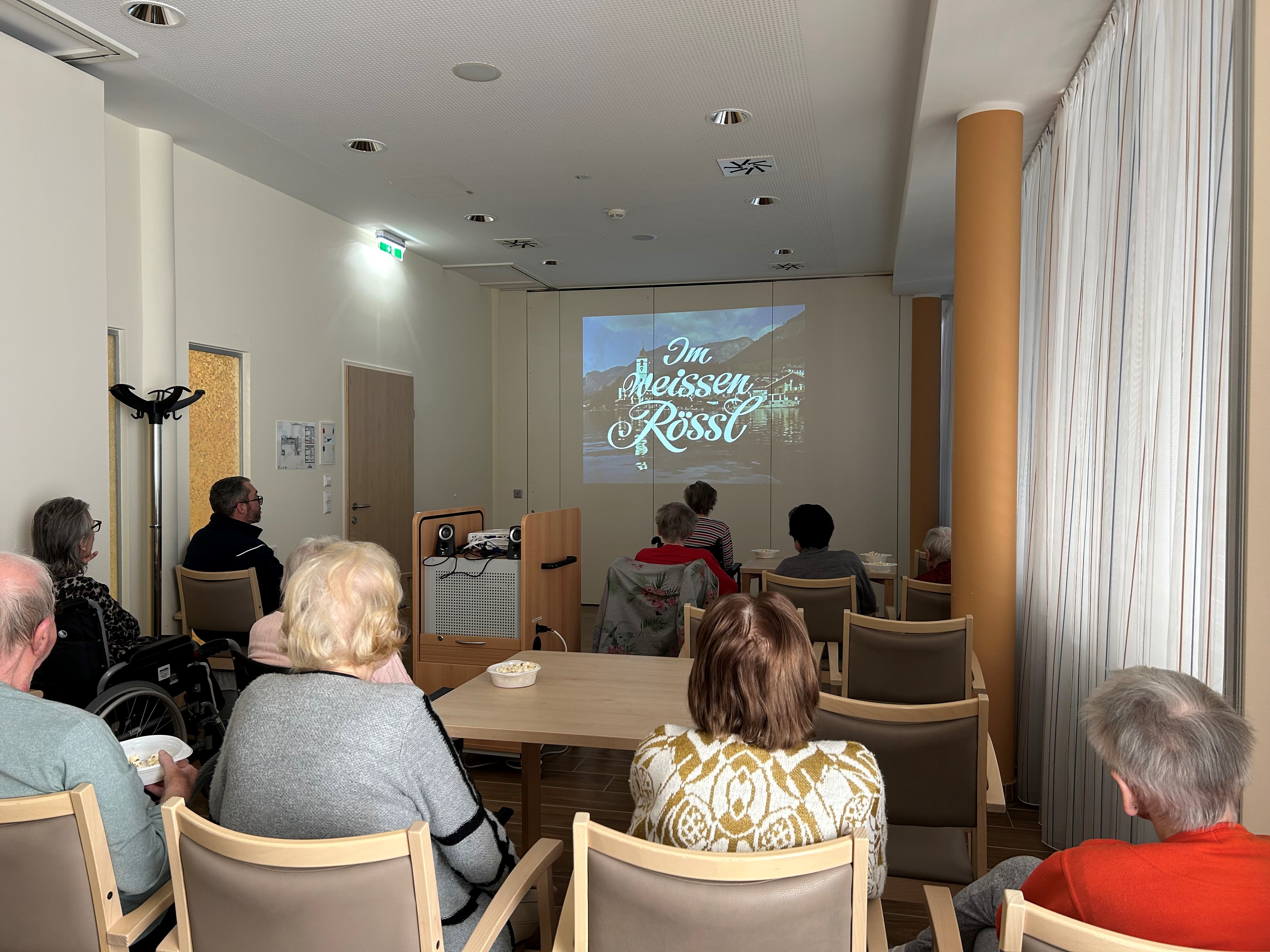 Ein gemütlicher Kinonachmittag sorgte für Freude und Abwechslung in SeneCura Sozialzentrum Sitzenberg-Reidling. Gemeinsam genießten die Bewohner:innen den Filmklassiker Im weißen Rössl von Peter Alexander auf großer Leinwand – natürlich mit Popcorn. Diese besondere Veranstaltung schaffte eine schöne Gemeinschaftsatmosphäre, weckte Erinnerungen und lud zum gemeinsamen Lachen und Staunen ein. Ein kleines Highlight, das für große Begeisterung sorgte.