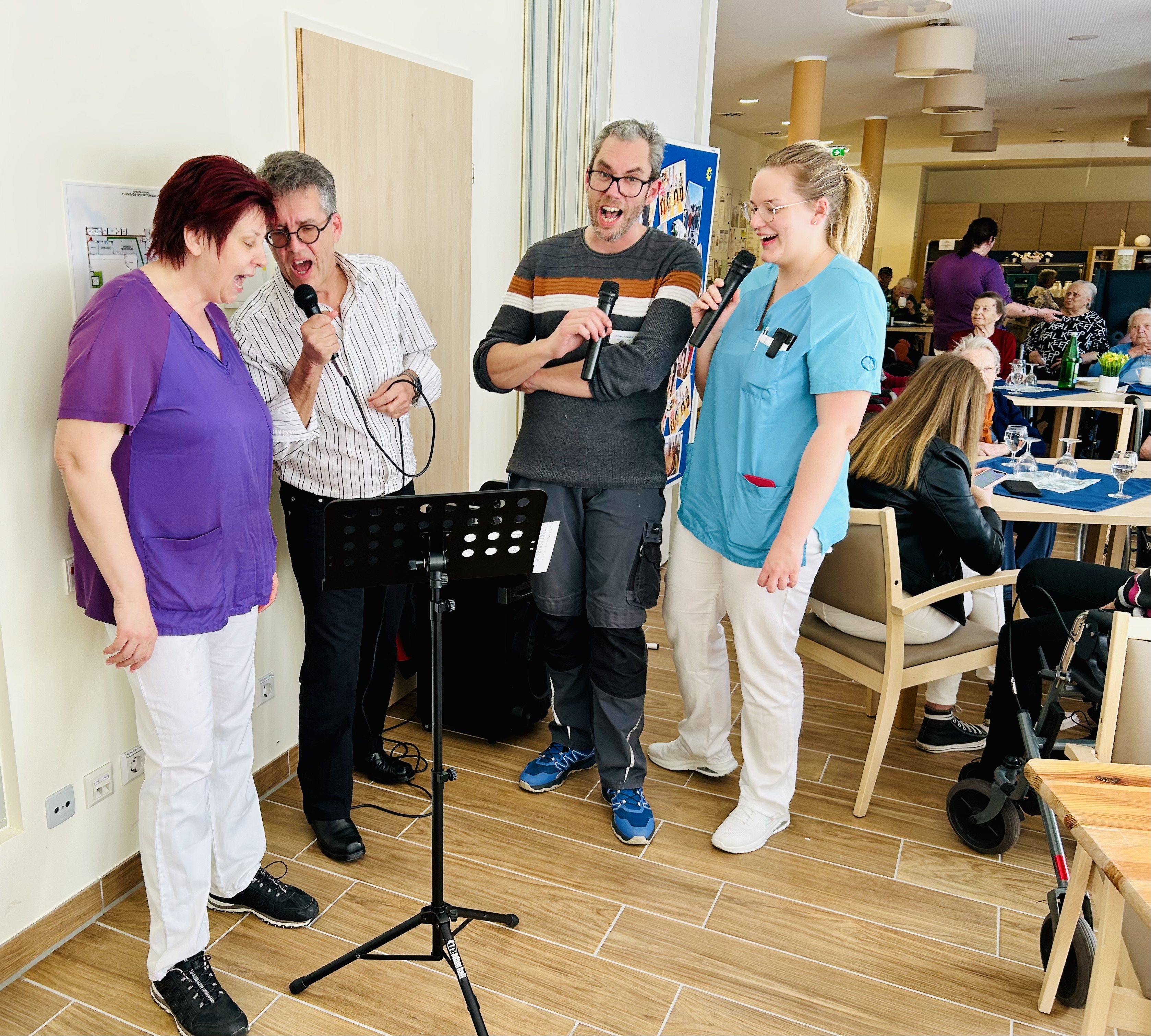 Kürzlich wurde im SeneCura Sozialzentrum Sitzenberg-Reidling bei einer lustigen Karaoke-Show gesungen, gelacht und geschunkelt! Mit Helmut Baumgartner am Mikrofon war die Stimmung großartig – von alten Klassikern bis zu beliebten Evergreens war alles dabei. Sowohl die Bewohner:innen als auch die Kolleg:innen haben mit Begeisterung mitgesungen und einen wunderbaren musikalischen Nachmittag erlebt.