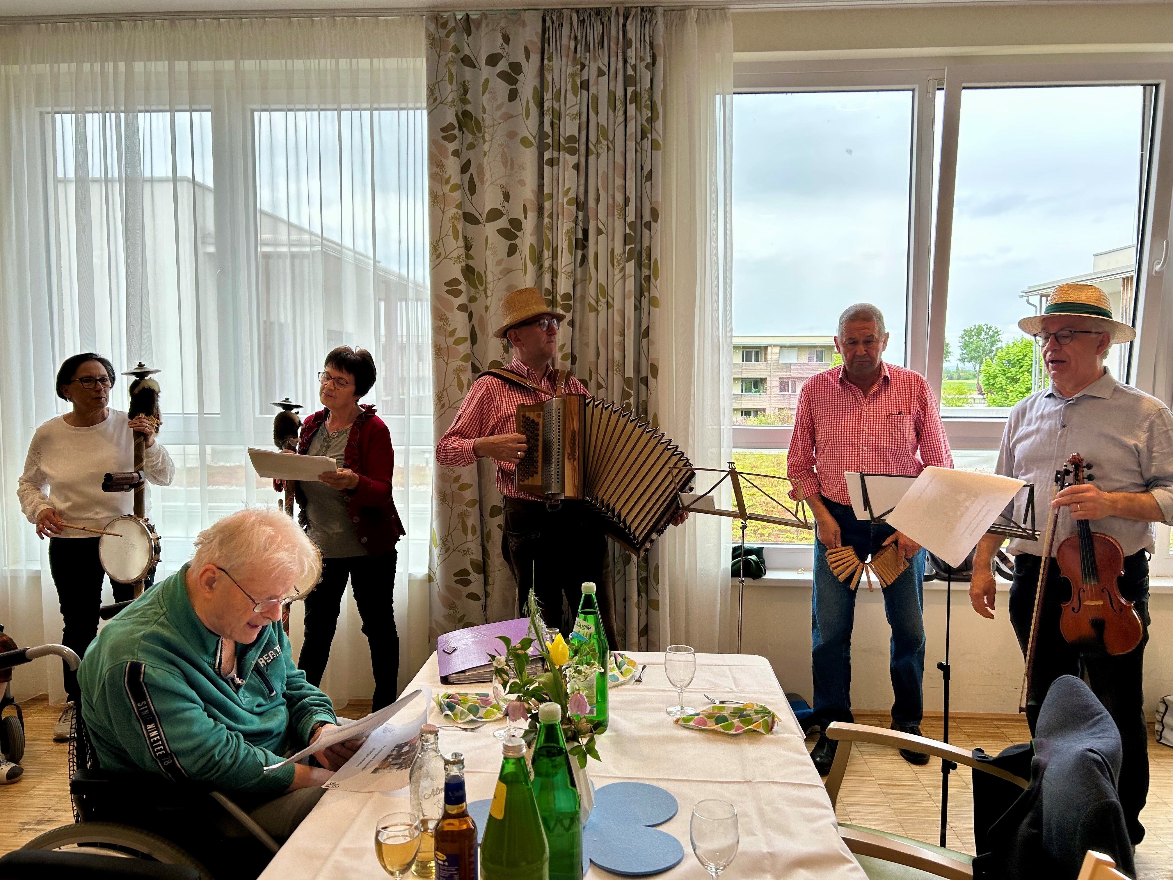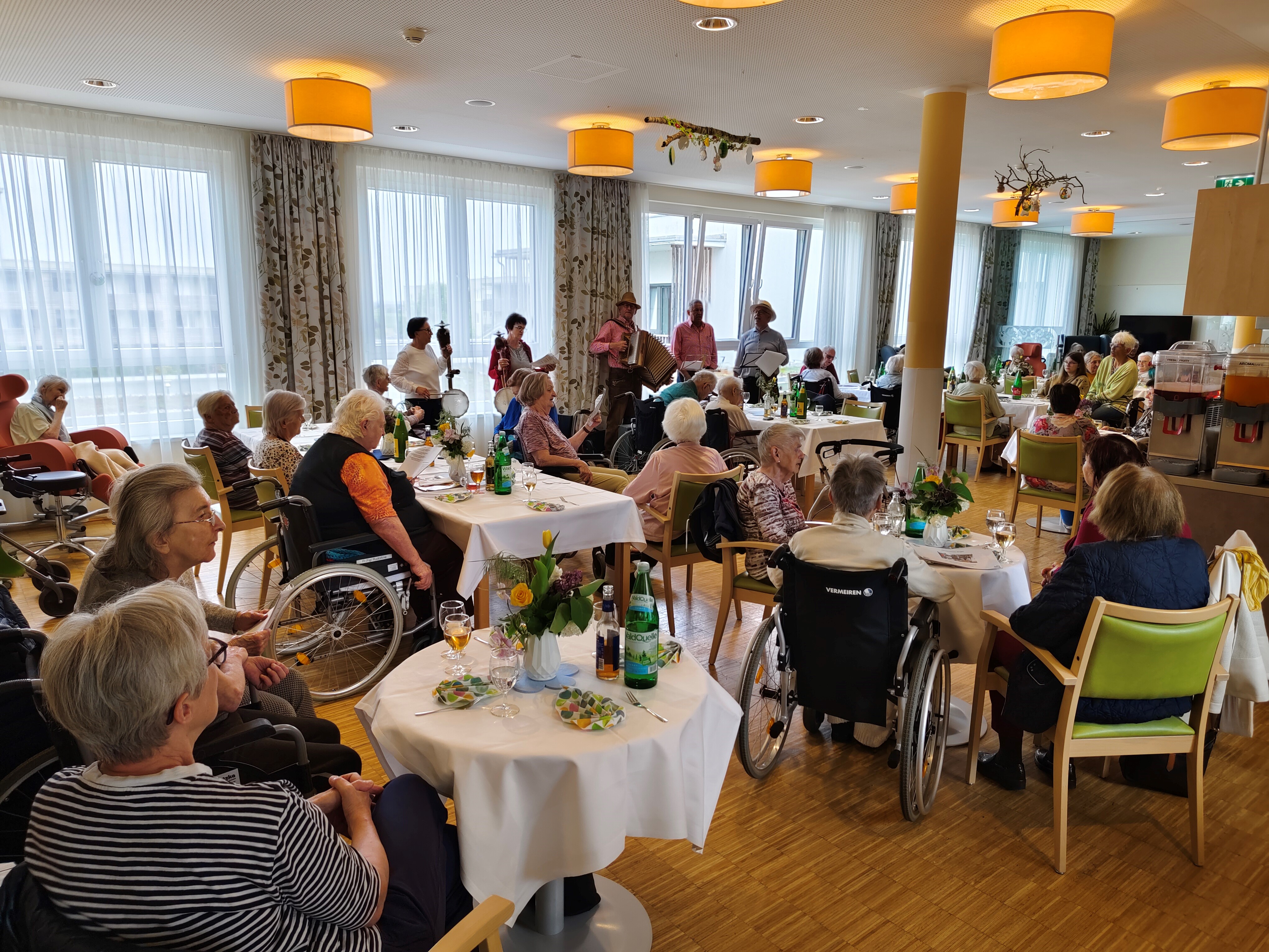Zum Muttertag gab es in der SeneCura Sozialzentrum Sitzenberg-Reidling ein fröhliches Fest mit den Bewohner:innen. Der Mühlbergzupfer Gratulierverein sorgte für die musikalische Untermalung und tolle Stimmung. Zusätzlich zur festlichen Jause gab es auch noch eine süße Überraschung – Sacherschnitten mit Herzdekoration. Es war ein festlicher Nachmittag voller Wärme, Dankbarkeit und Lächeln.