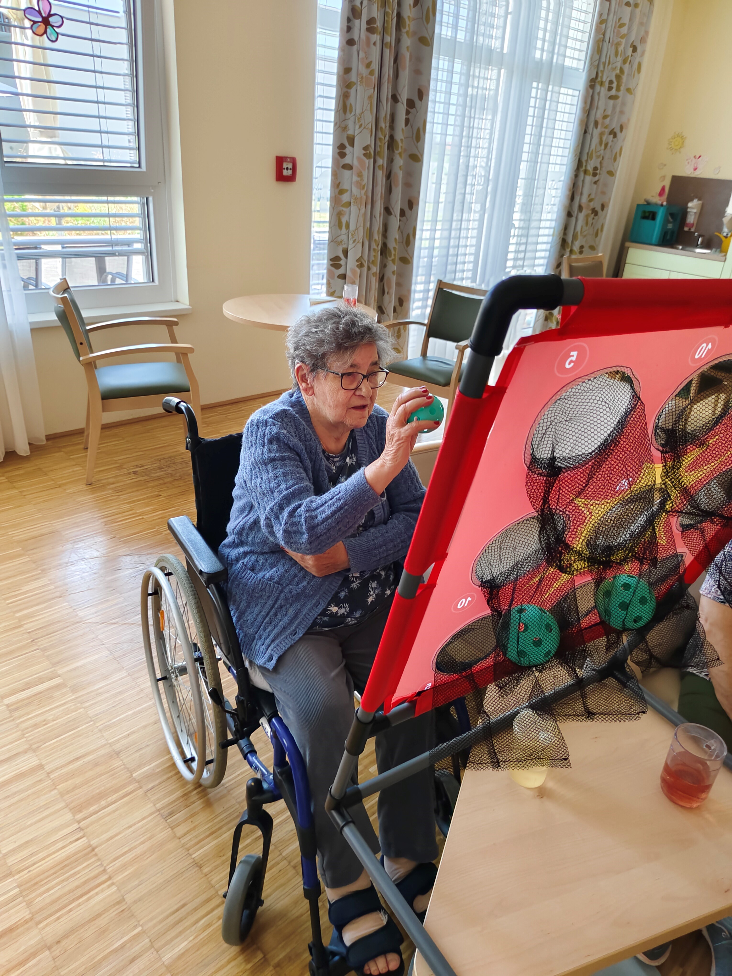 Mit voller Konzentration und großem Eifer wurde heute im Aufenthaltsraum des SeneCura Sozialzentrums Sitzenberg-Reidling fleißig gespielt. Unsere Bewohner:innen haben mit einem gezielten Wurf bei verschiedenen Ballspielen ihre Treffsicherheit unter Beweis gestellt. So bringen wir nicht nur Freude, sondern fördern auch Motorik, Koordination und das Miteinander.