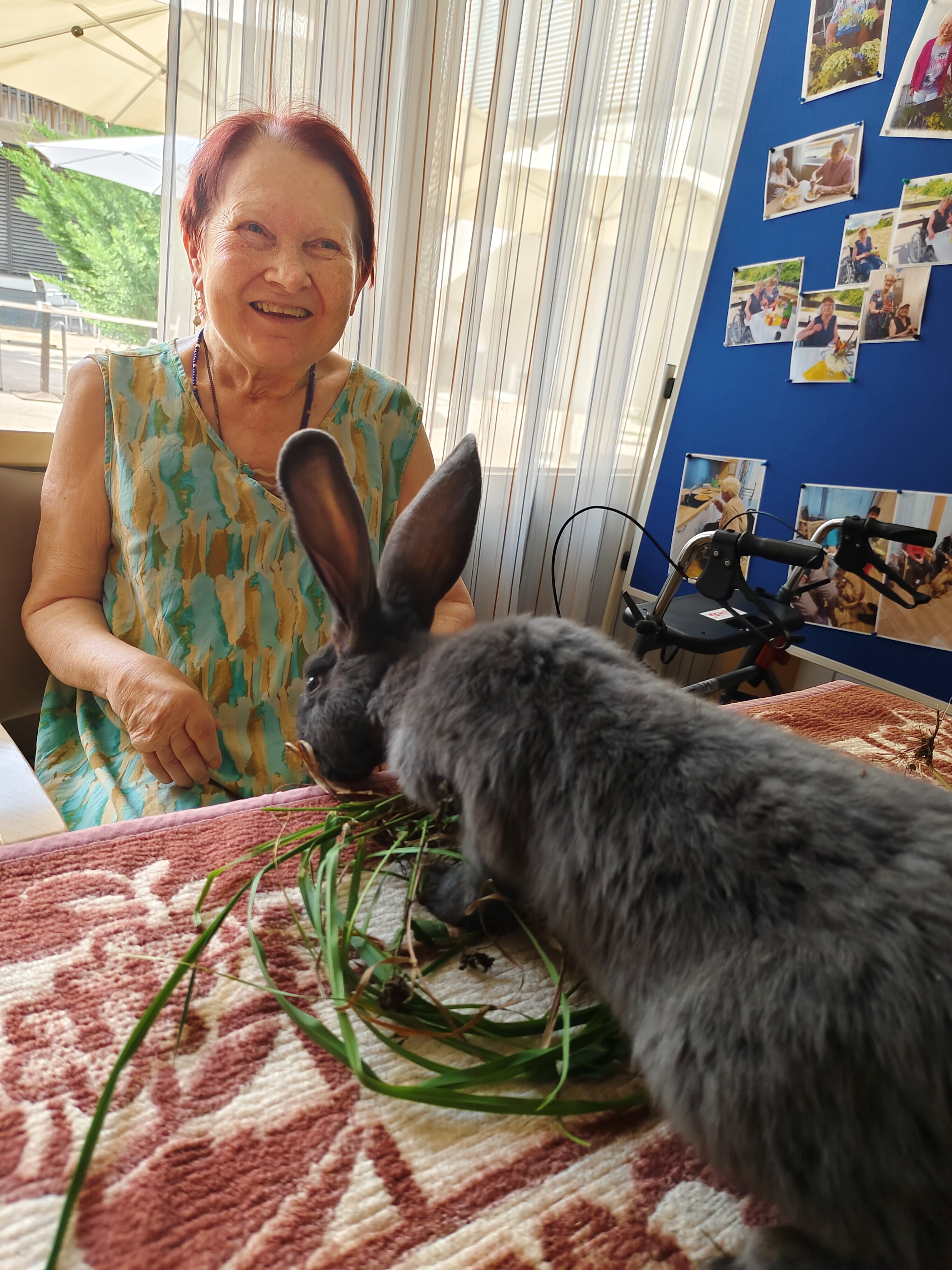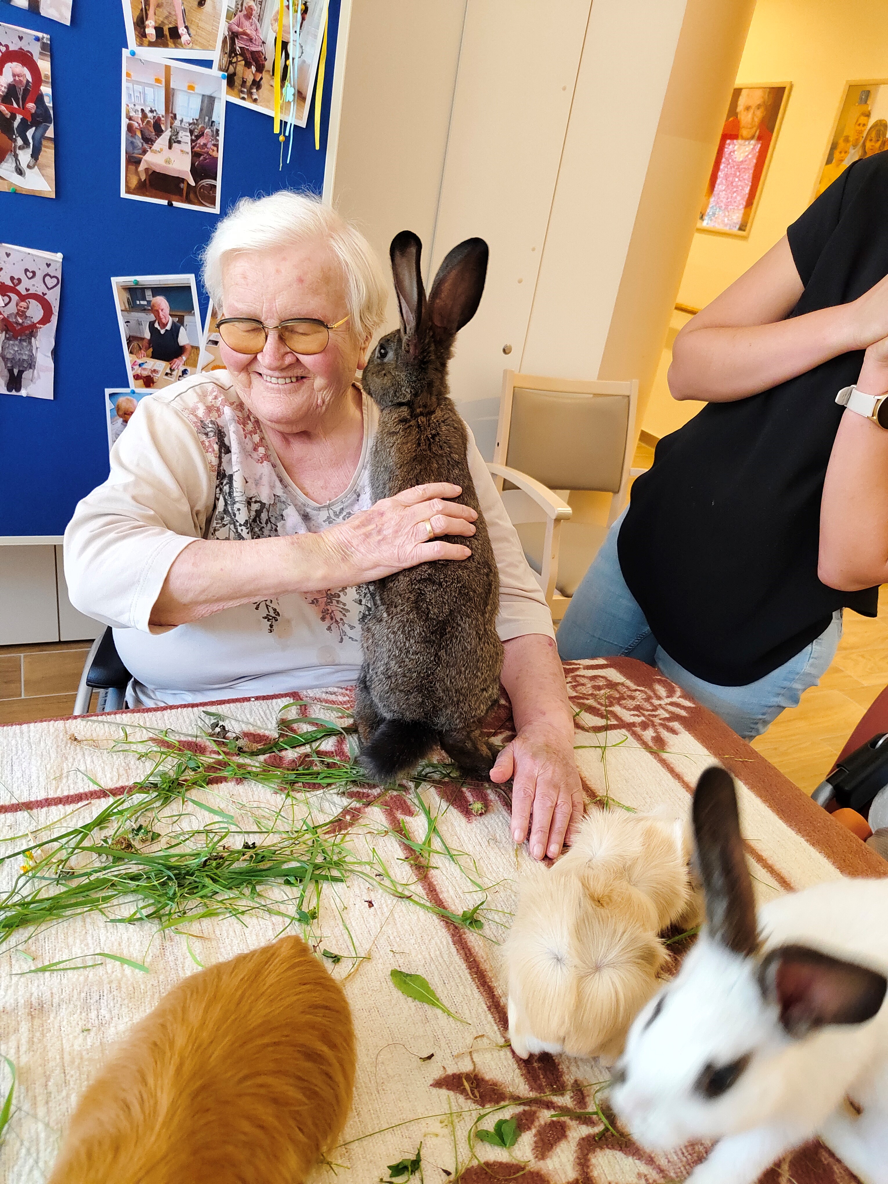 Im SeneCura Sozialzentrum Sitzenberg-Reidling haben die Bewohner:innen wieder ganz besonderen Besuch bekommen. Kleine tierische Freunde, wie Hasen und Meerschweinchen, überraschten die Bewohner:innen des Hauses und zauberten ihnen ein Lächeln ins Gesicht. Sie lassen sich geduldig streicheln, vorsichtig füttern und sorgte dabei für die schönsten, strahlenden Gesichter. Solche Momente bleiben – noch Tage später wird über die weichen Fellnasen gesprochen, gelacht und erinnert. Diese Besuche bringen Wärme, Freude und ein Stück Lebendigkeit in unseren Alltag.